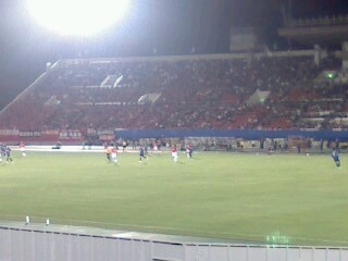 何年か前のレプリカもユニも持ってるけど、宮本が辞めてからは...とのことなるほど。「久しぶりにレッズ見られるわ〜」ってなやり取りに多少危惧を感じつつ万博記念競技場へ。ゲートを通って満員スタジアムにてウロウロしておりますと、誘導係さんに素早く「こちらどうぞ」と案内していただき、前方席に座ることが出来ました。バレー会場でのせいぜい交通整理程度の誘導係とは大違いのテキパキっぷりです。1,2,3...4列目ですね。よしよし。