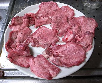 今晩はローストチキン、ではなく塩タンを。昨年は全部シチューにされてケンカのタネになったタンですが、今年は無事に・・・牛さんすいません。